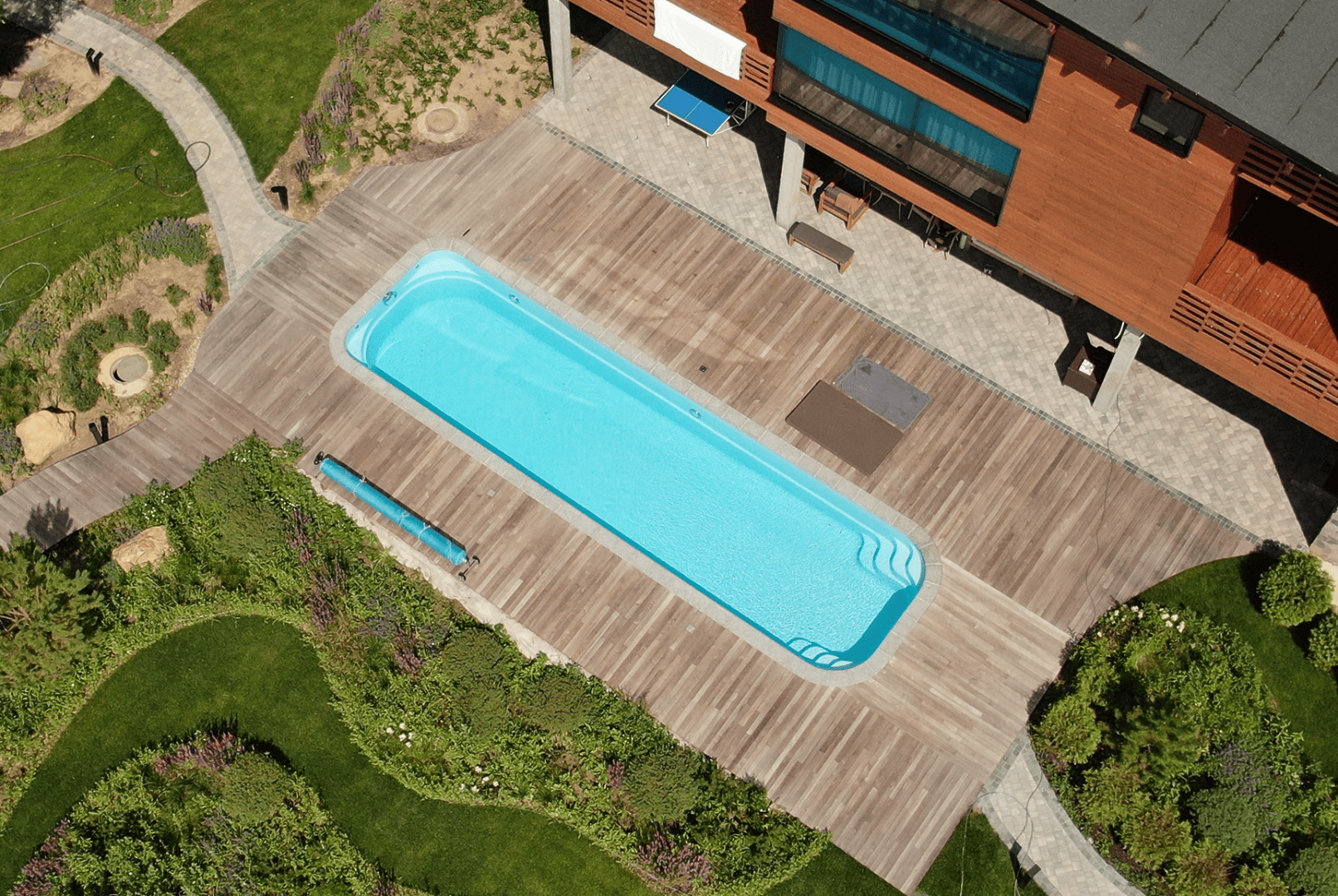 Бассейн нежно-голубого цвета станет маленьким морем на вашем участке. Он дарит потрясающее ощущение чистоты и свежести. Недаром этот цвет – настоящая классика европейских курортов. Откройте каталог любой турфирмы – и вас поразит обилие светло-голубых пятен бассейнов. Чтобы ваш любимый курорт всегда был рядом с вами – выбирайте покрытие Берлинская лазурь.